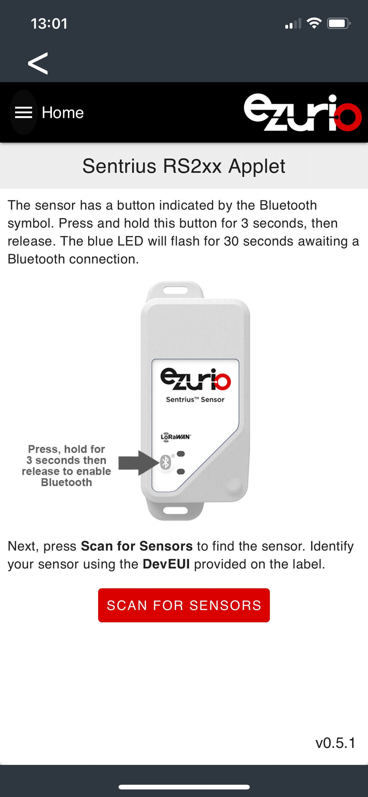 The Ezurio Xbit app for configuration of the RS26x is available for Android and iOS. See the official RS26x quick start guide and RS26x user guide for details on configuring the RS26x sensor.