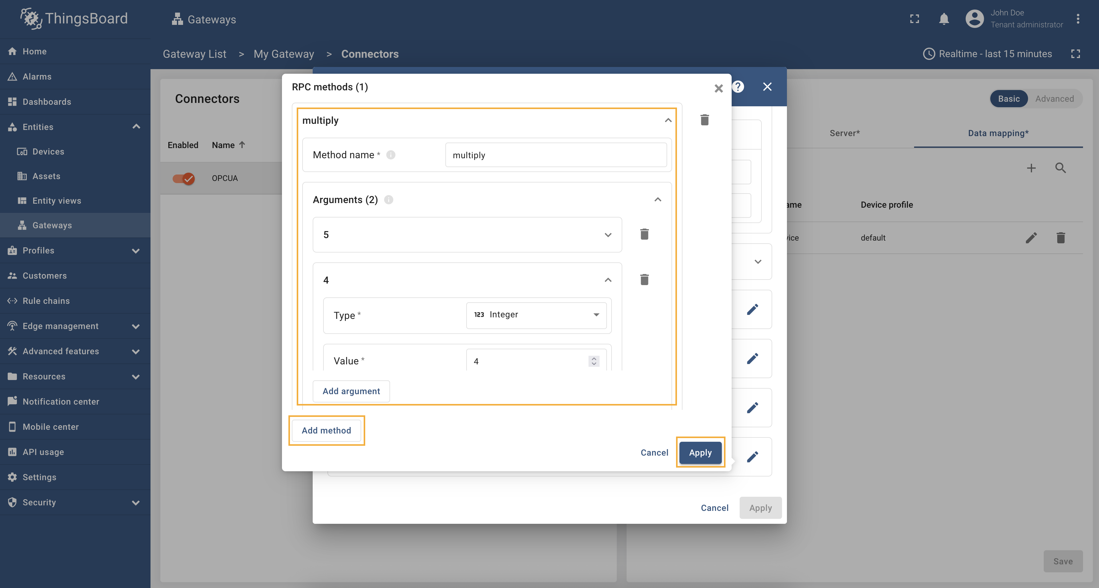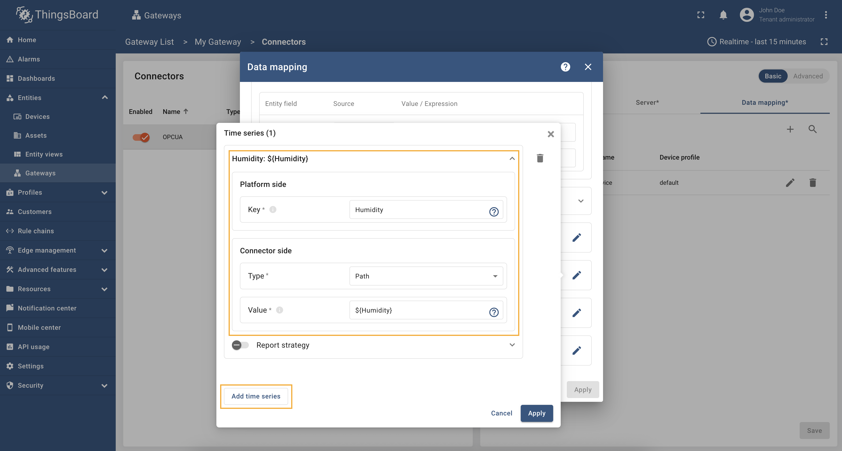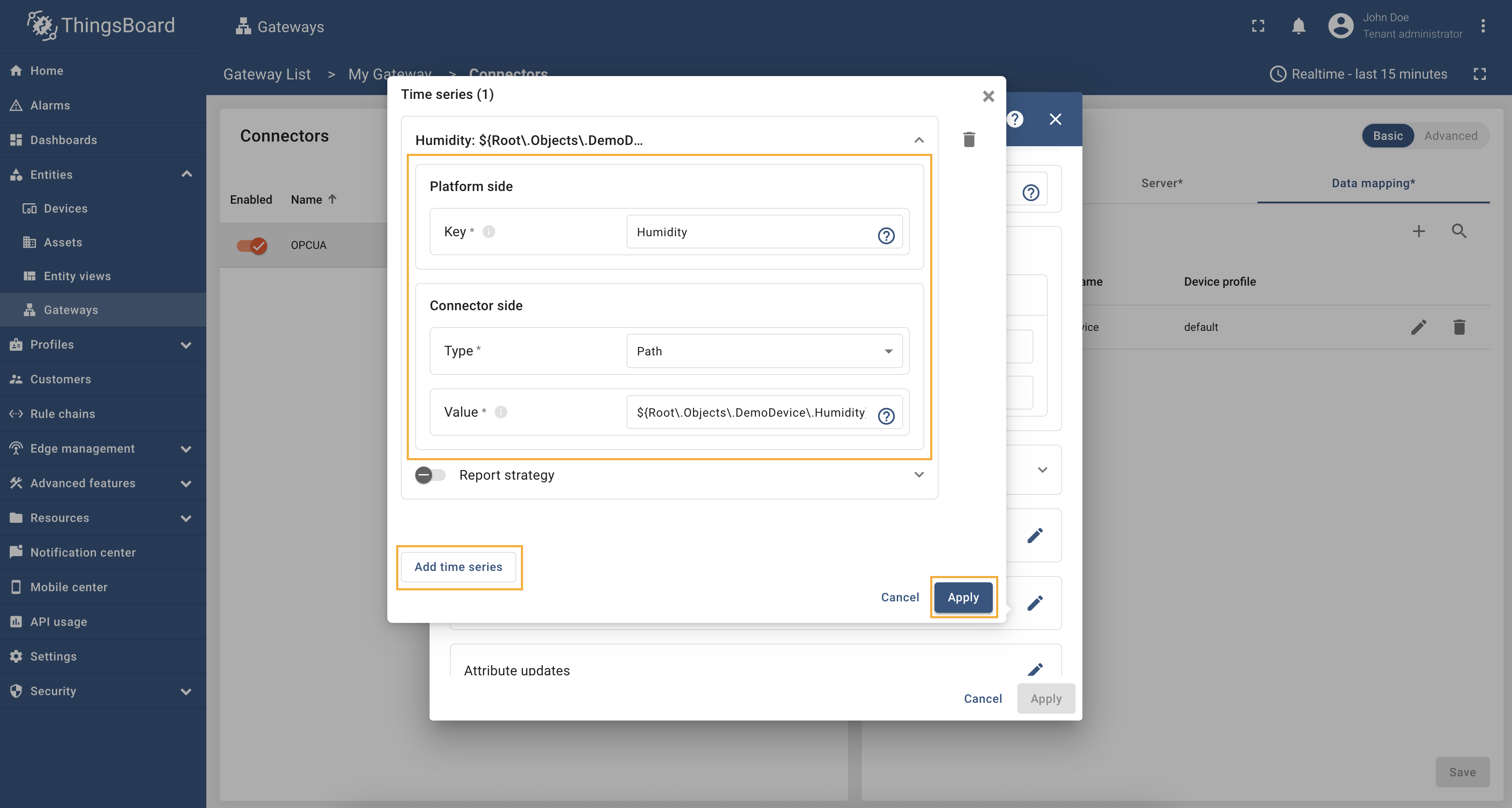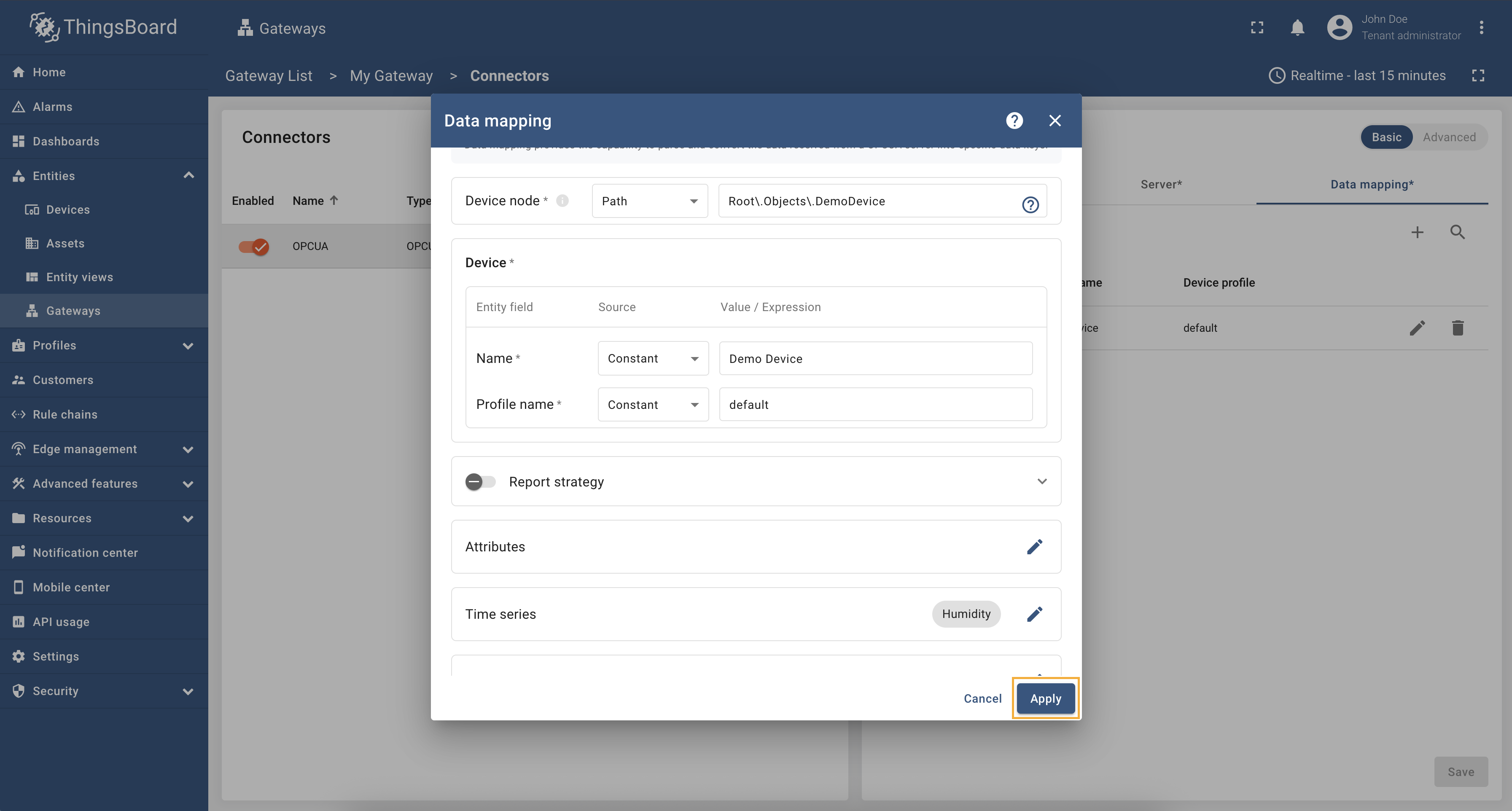 Let’s configure the device name and profile in the OPC-UA connector. For this purpose, follow these steps: