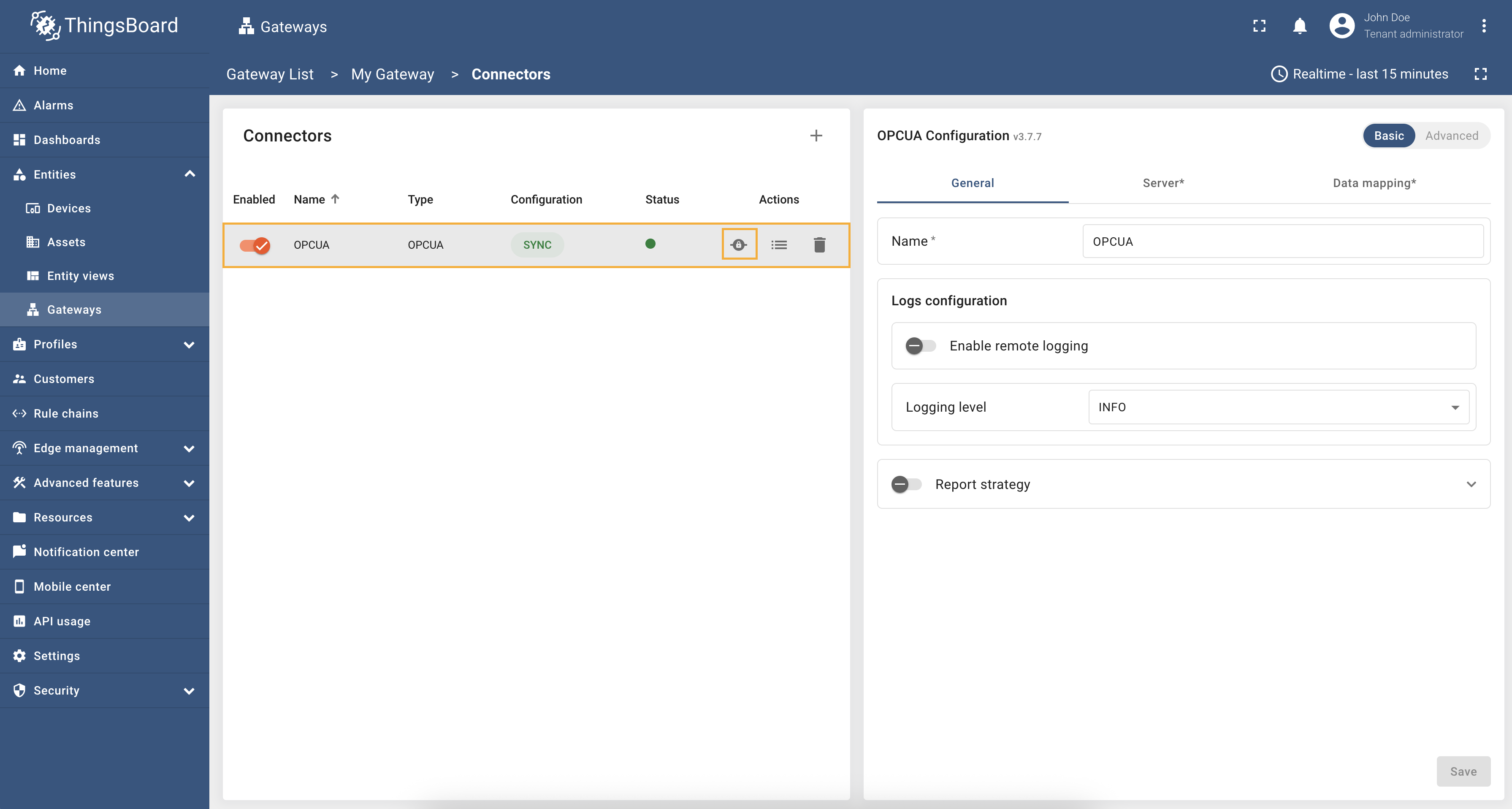 Basic mode is designed for users who are new to ThingsBoard IoT Gateway and want to quickly set up the connector with minimal configuration. It provides a simplified interface with essential settings.