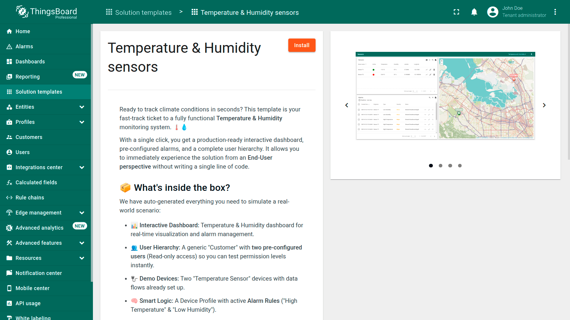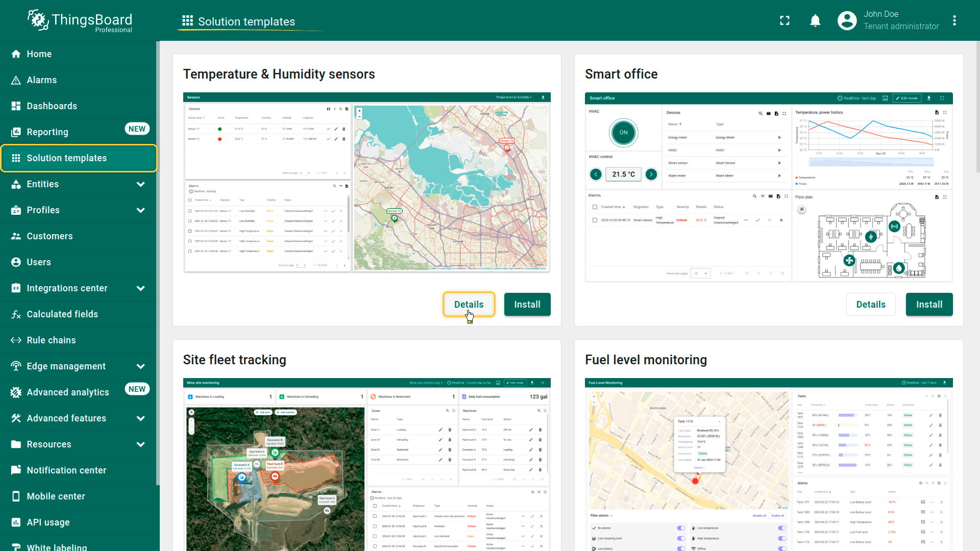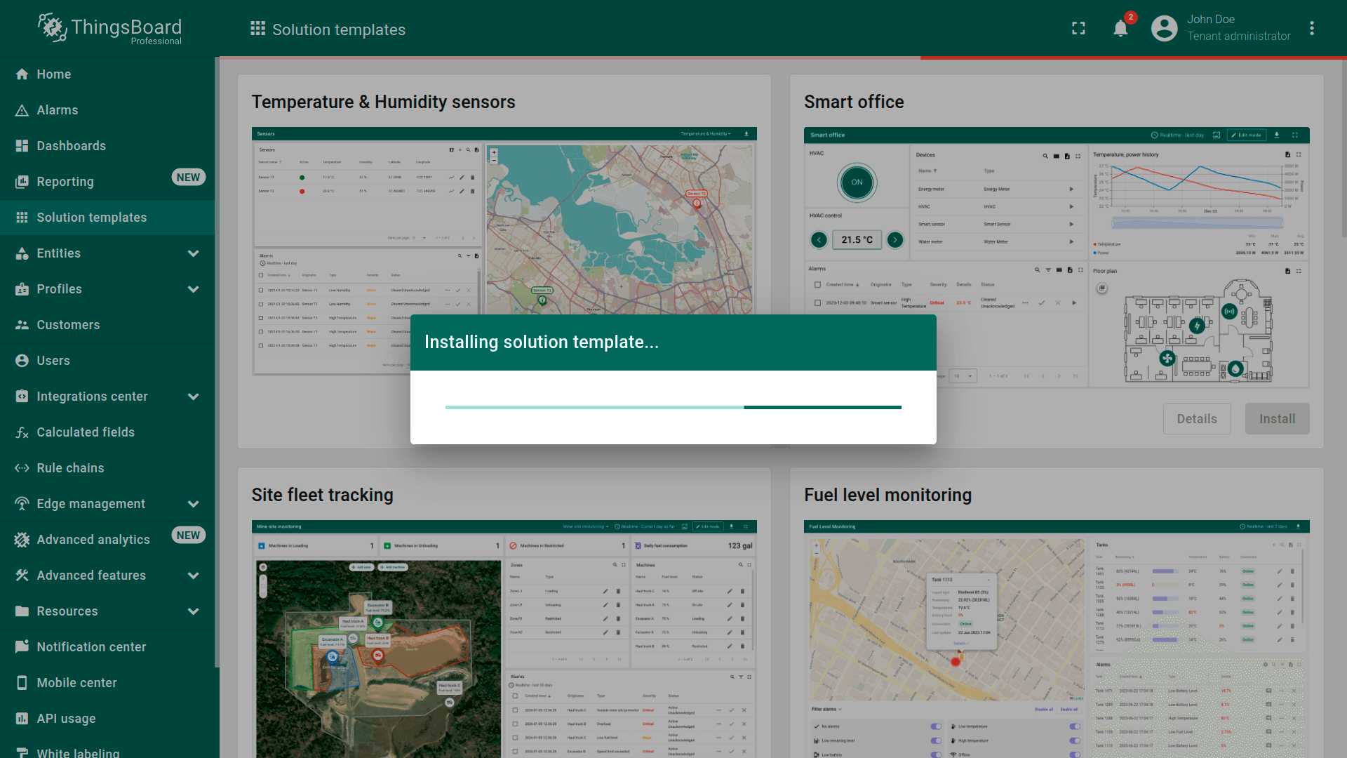 ThingsBoard provides IoT Solution Templates to significantly reduce the time-to-market for your IoT products.