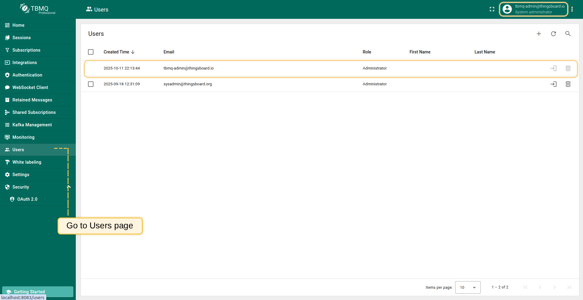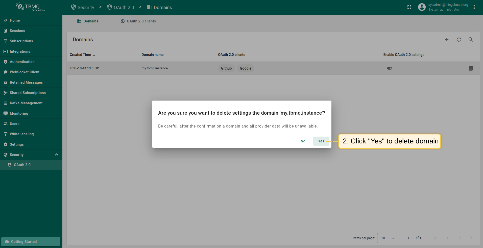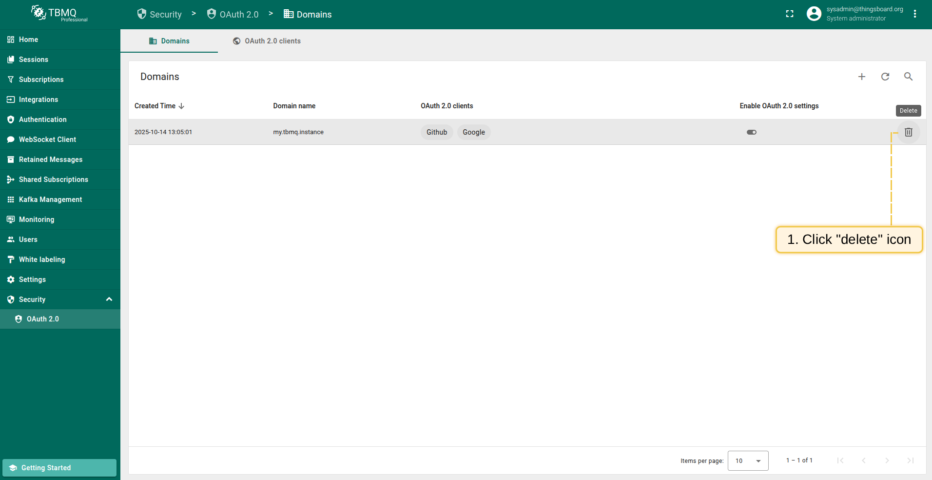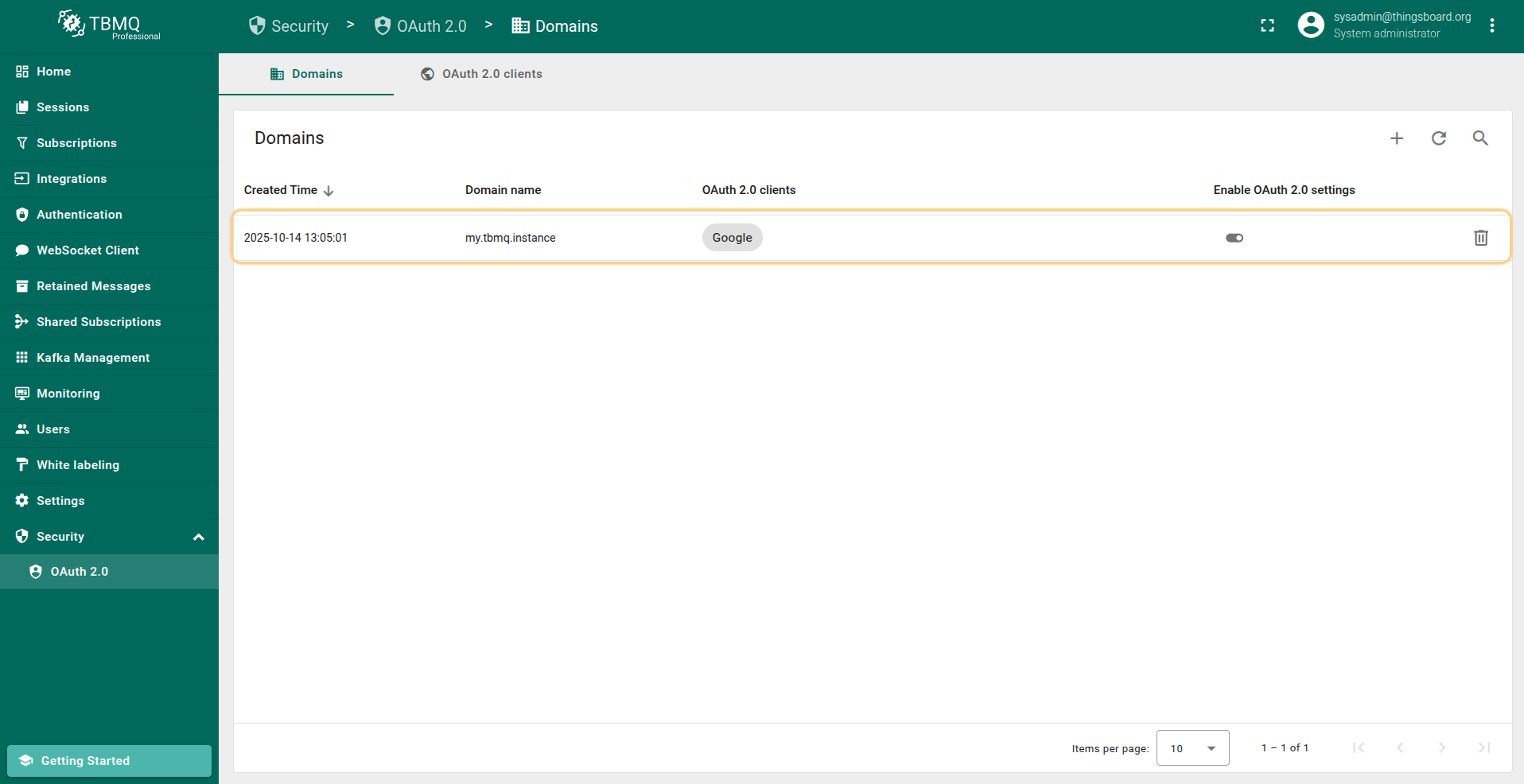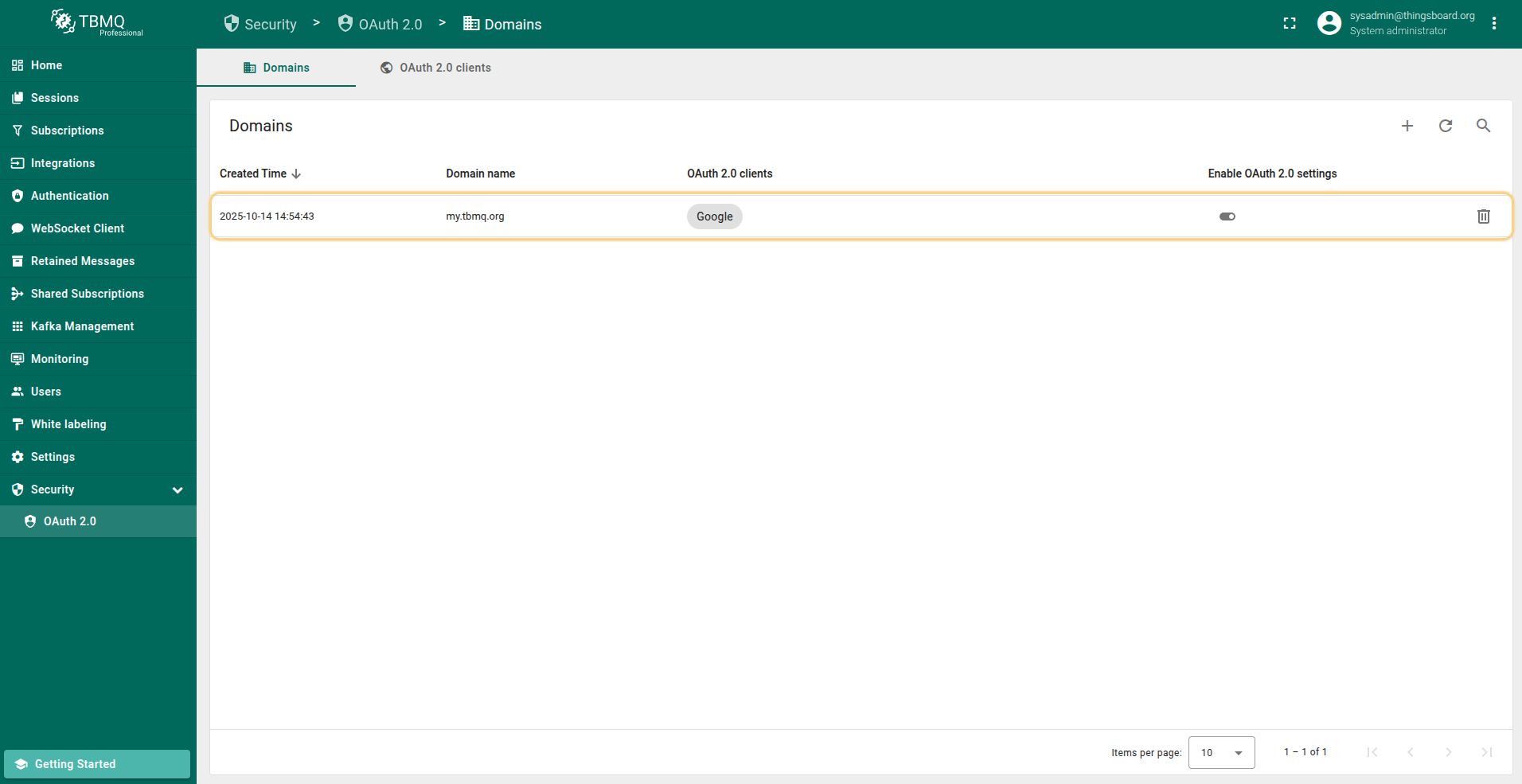 Email attribute key – The attribute key from the external OAuth 2.0 user info that will be used for the TBMQ user email property.