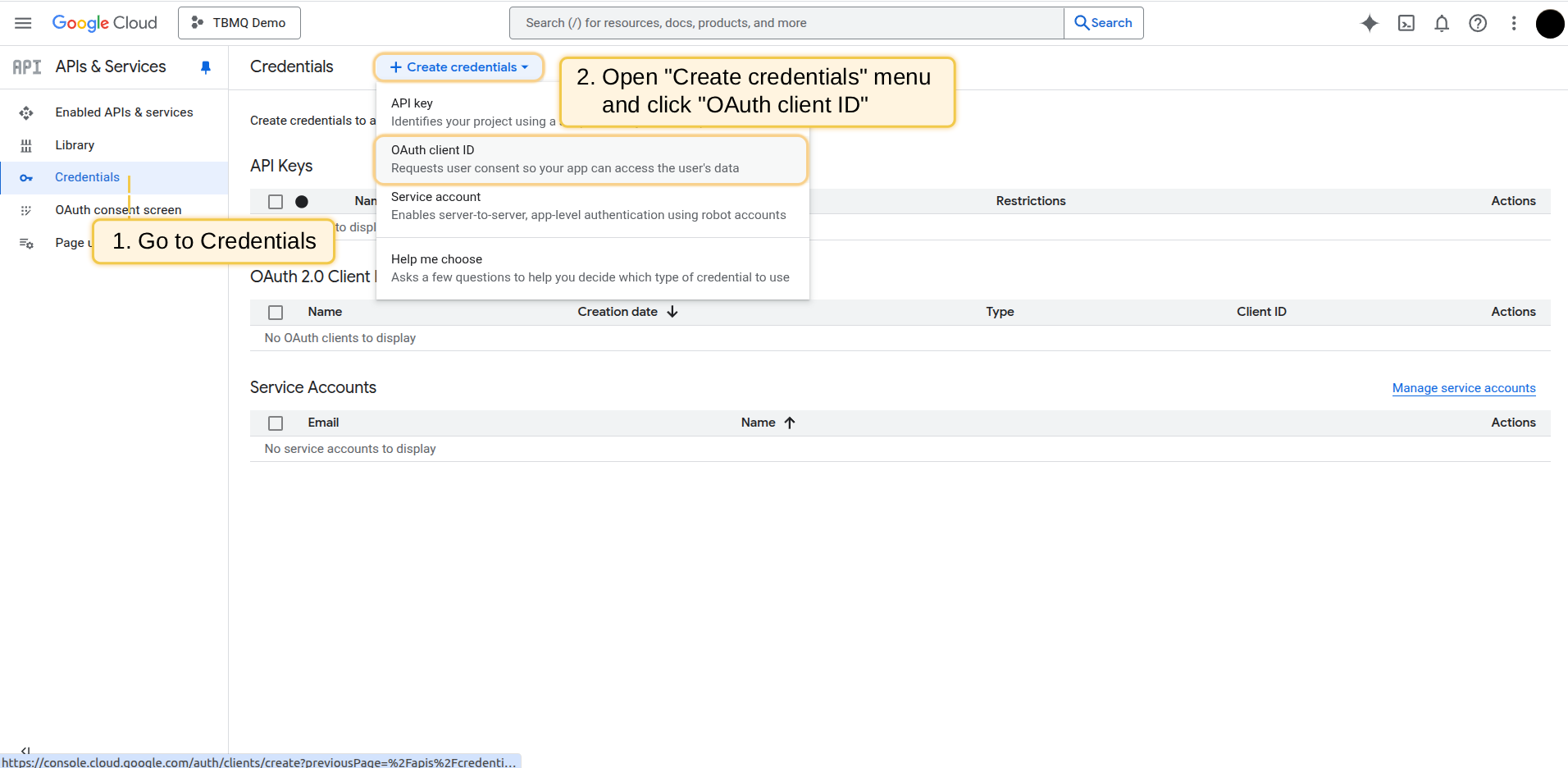 To apply the configuration properly, we first need to obtain OAuth 2.0 credentials: