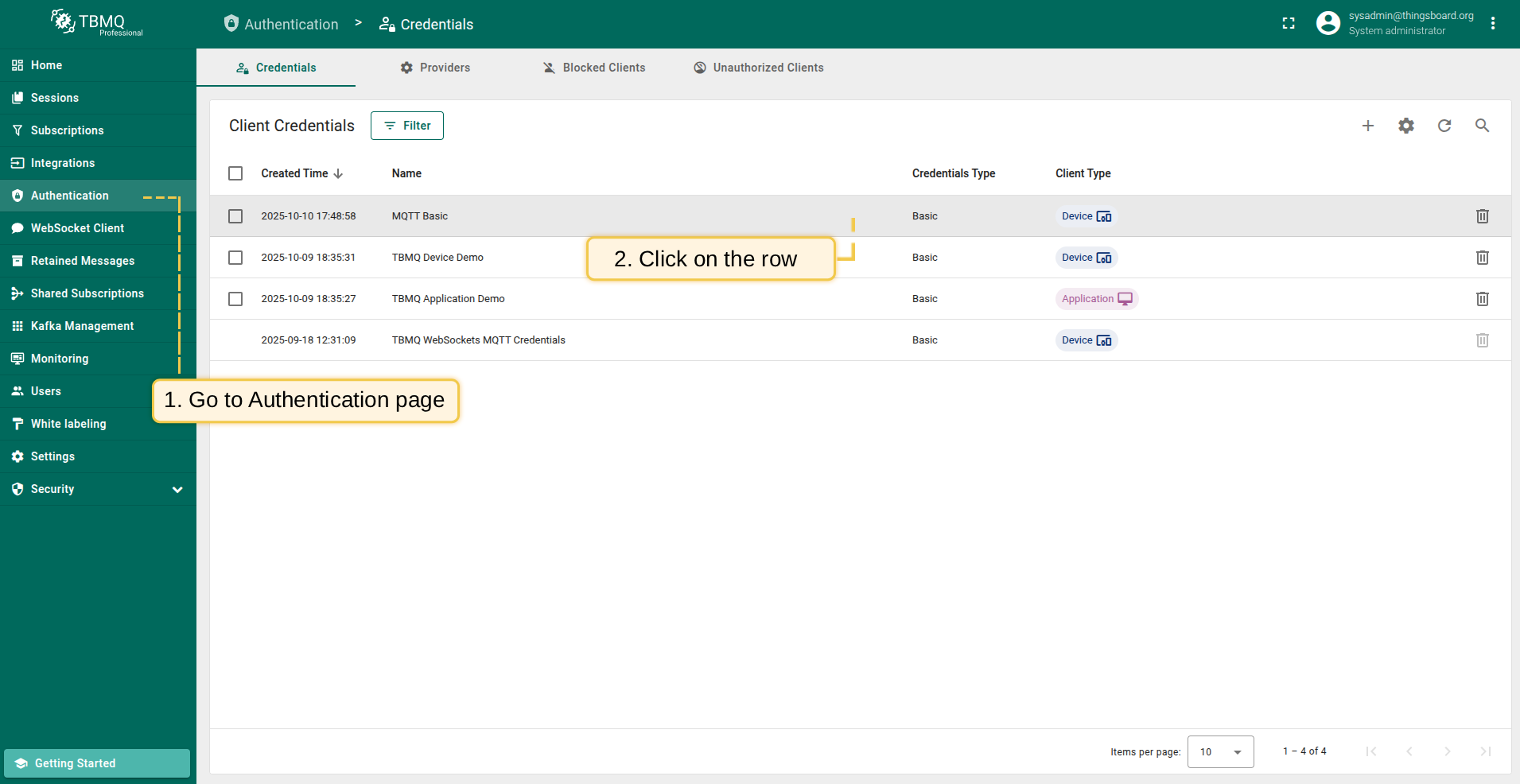 TBMQ offers various options for managing MQTT client credentials via both its Web UI and REST API.