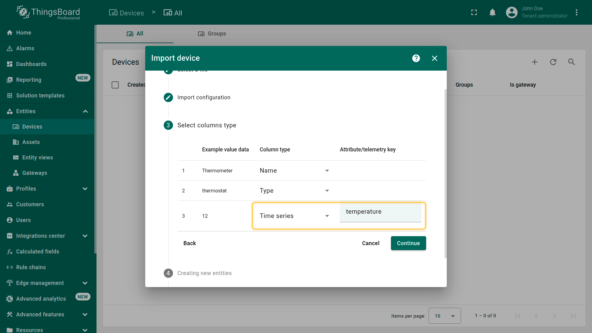- Current entity — the entity you are configuring (device, asset, customer, or profile).