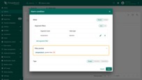 - Updates to an existing active alarm, when the create condition triggers again with different criteria For example, if a Warning alarm remains active but the new condition qualifies as Major, the severity will be increased.