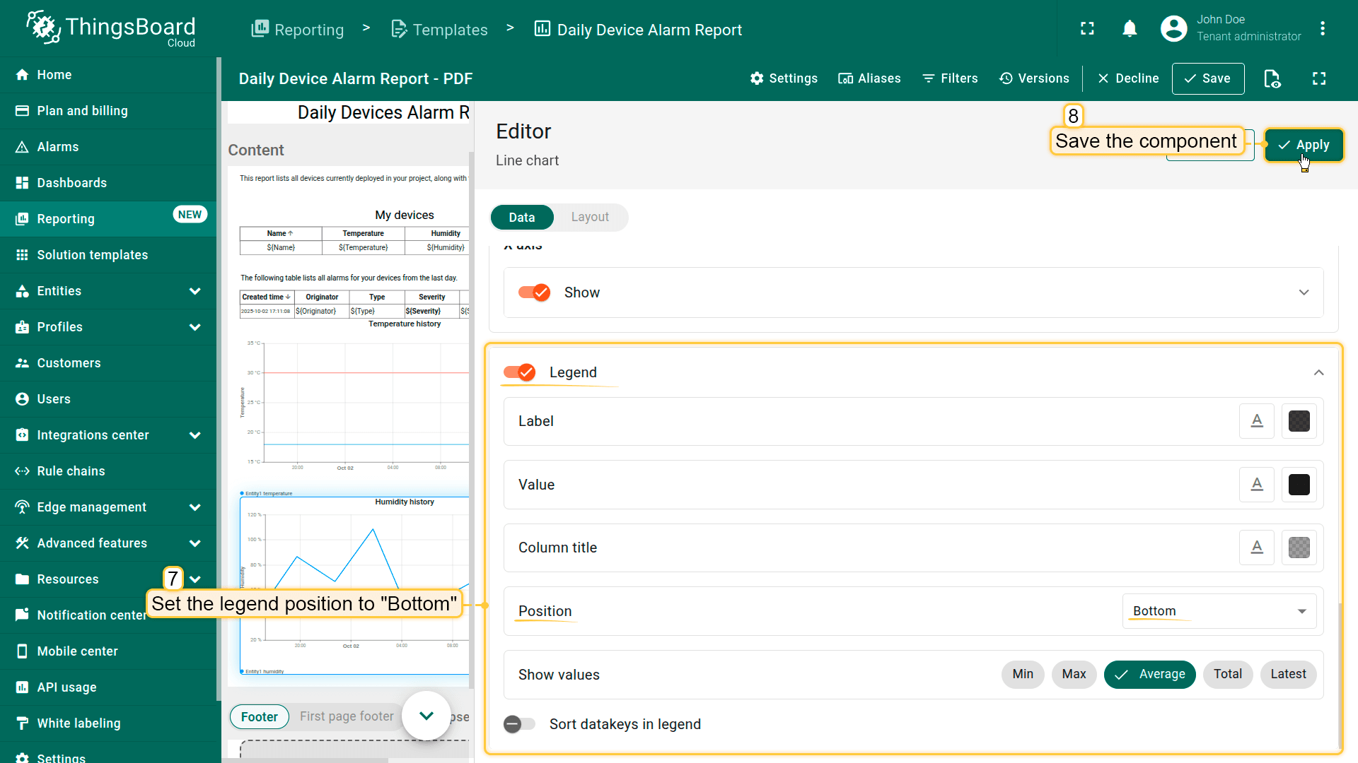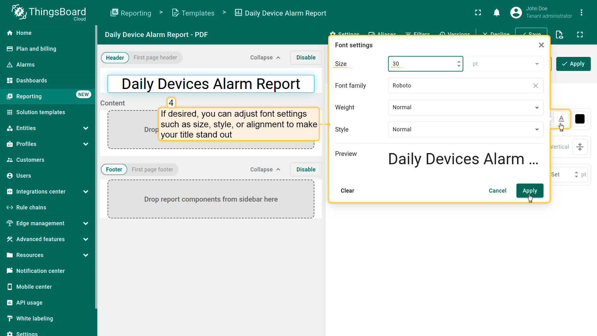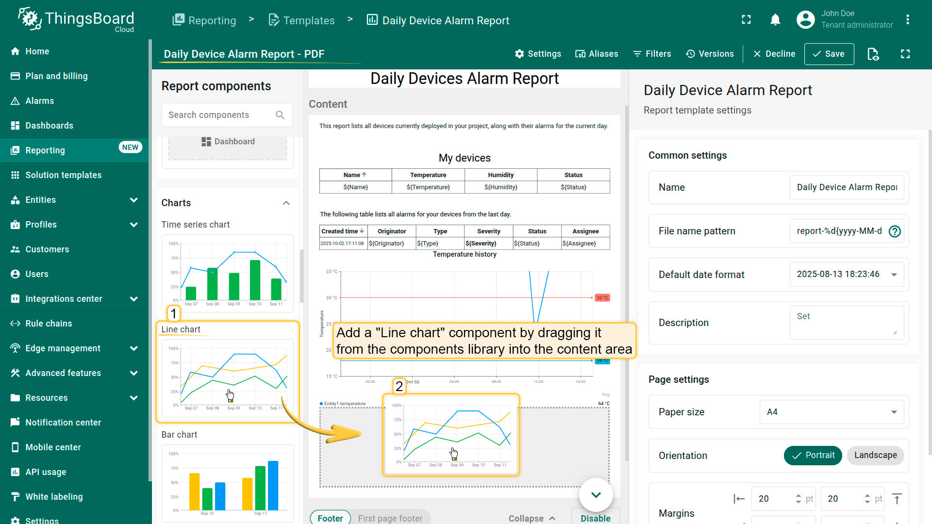 In this guide, we'll walk through the basic steps of using Reporting in ThingsBoard, and create a report template with automated delivery configured for two different customers.