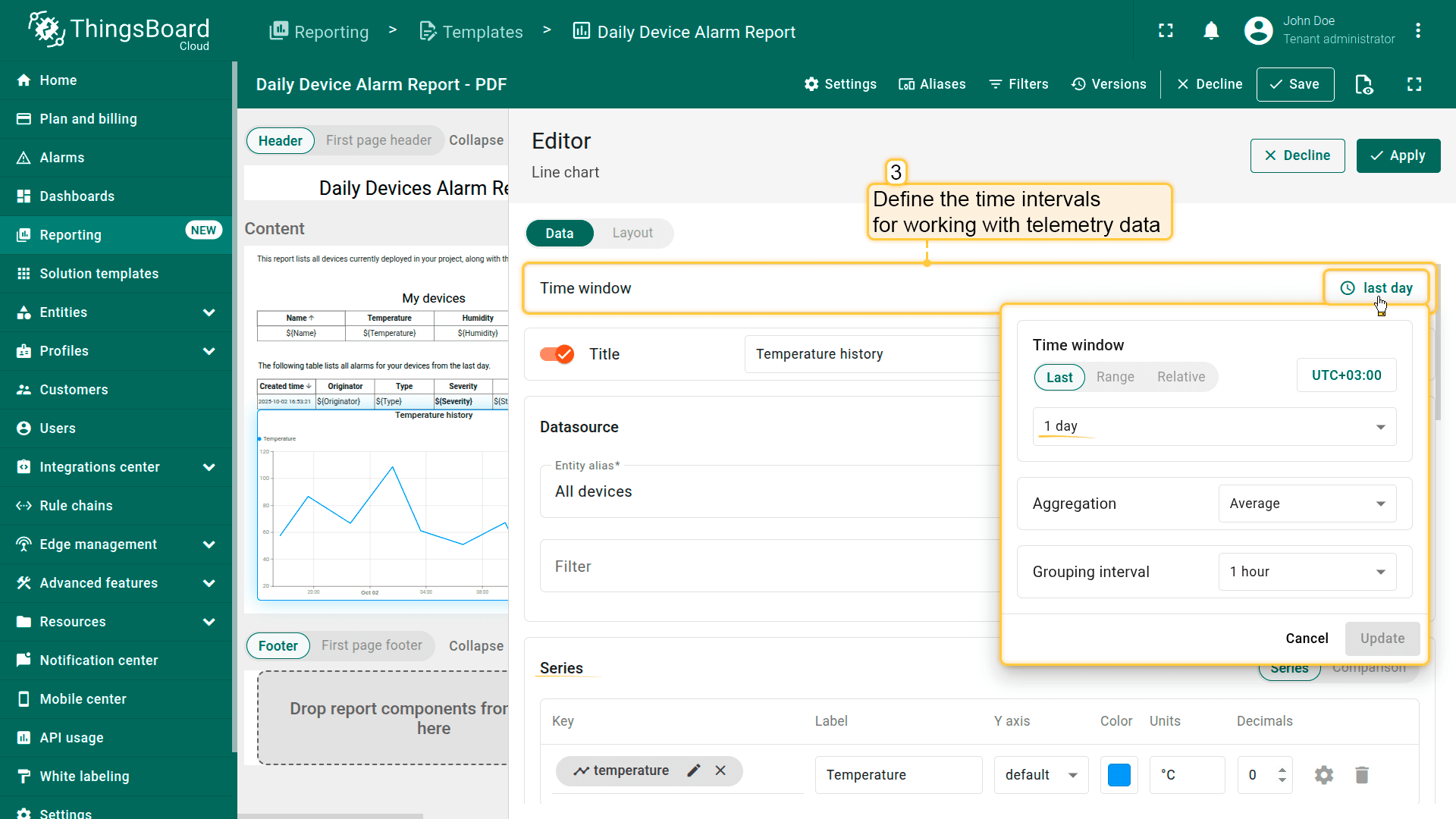 In ThingsBoard, Reporting is a powerful and flexible tool for collecting, organizing, and automatically delivering data in the form of reports.