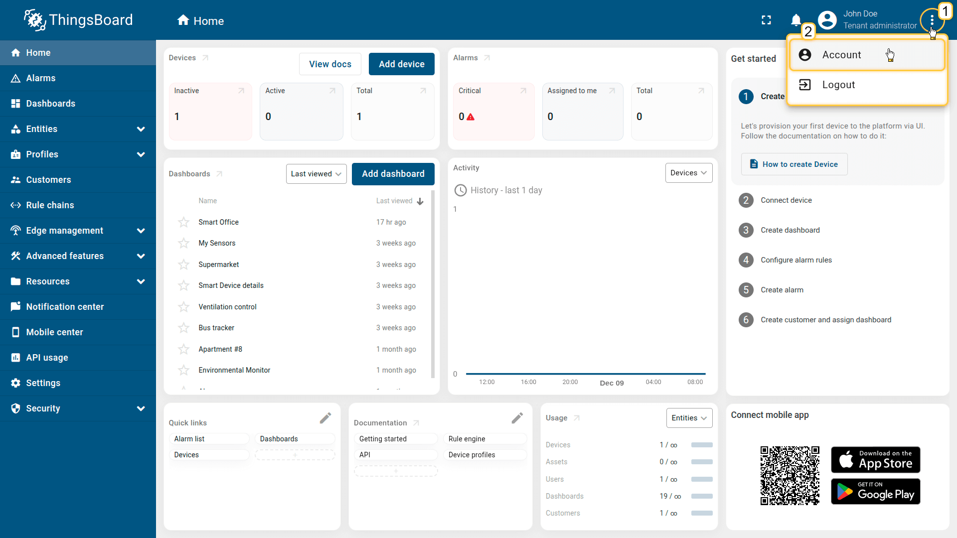 API keys provide a simpler alternative to password-based authentication for the ThingsBoard API.