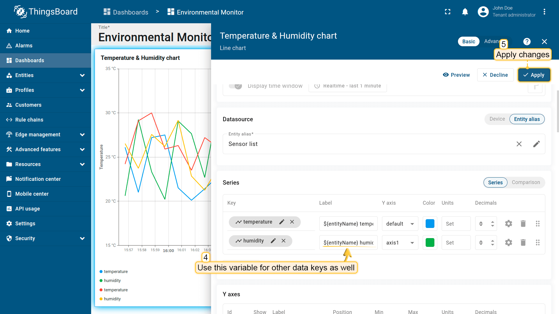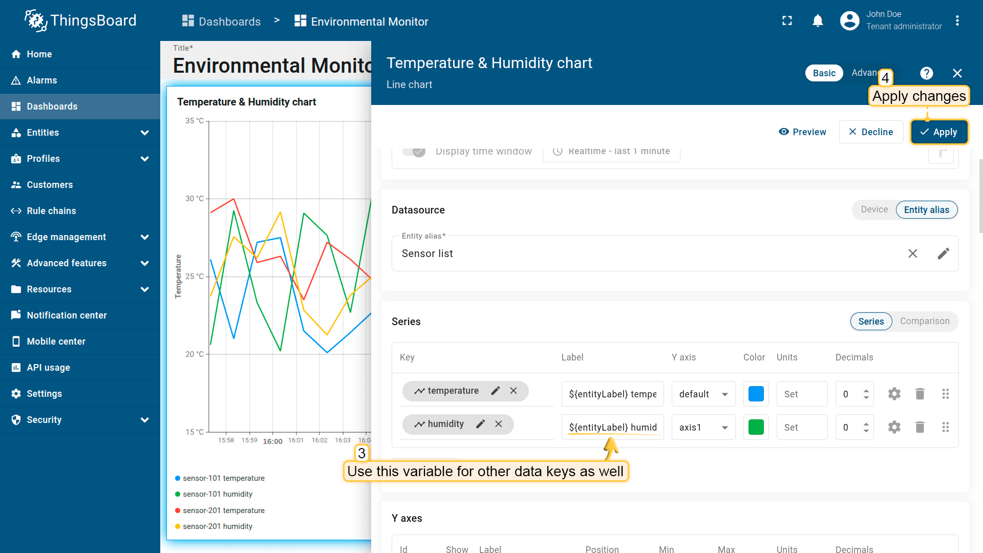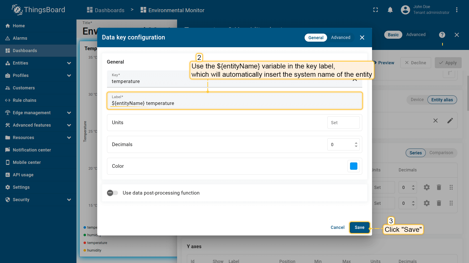 - Change label name to "Devices count" and specify units. Click "Save";