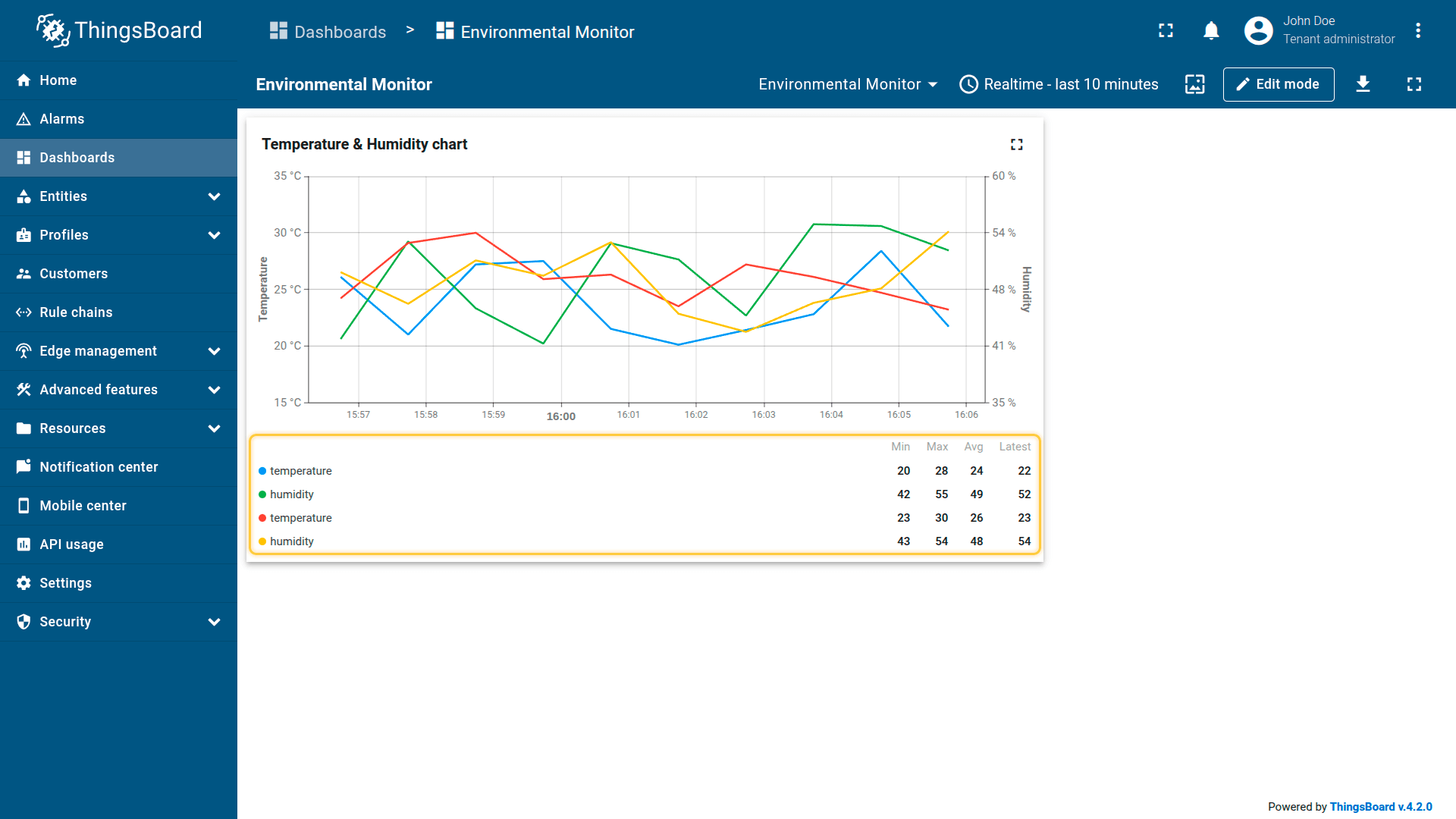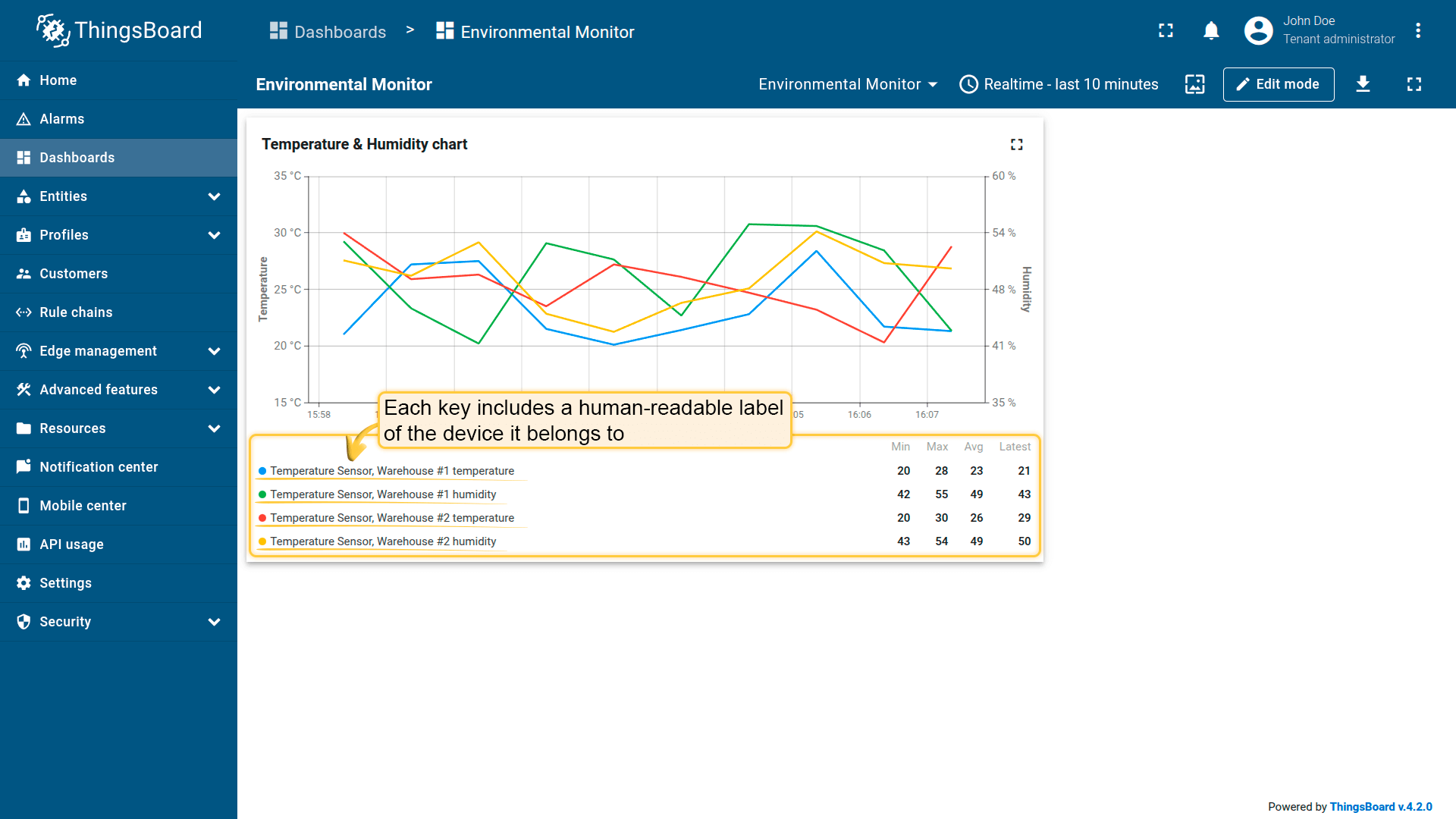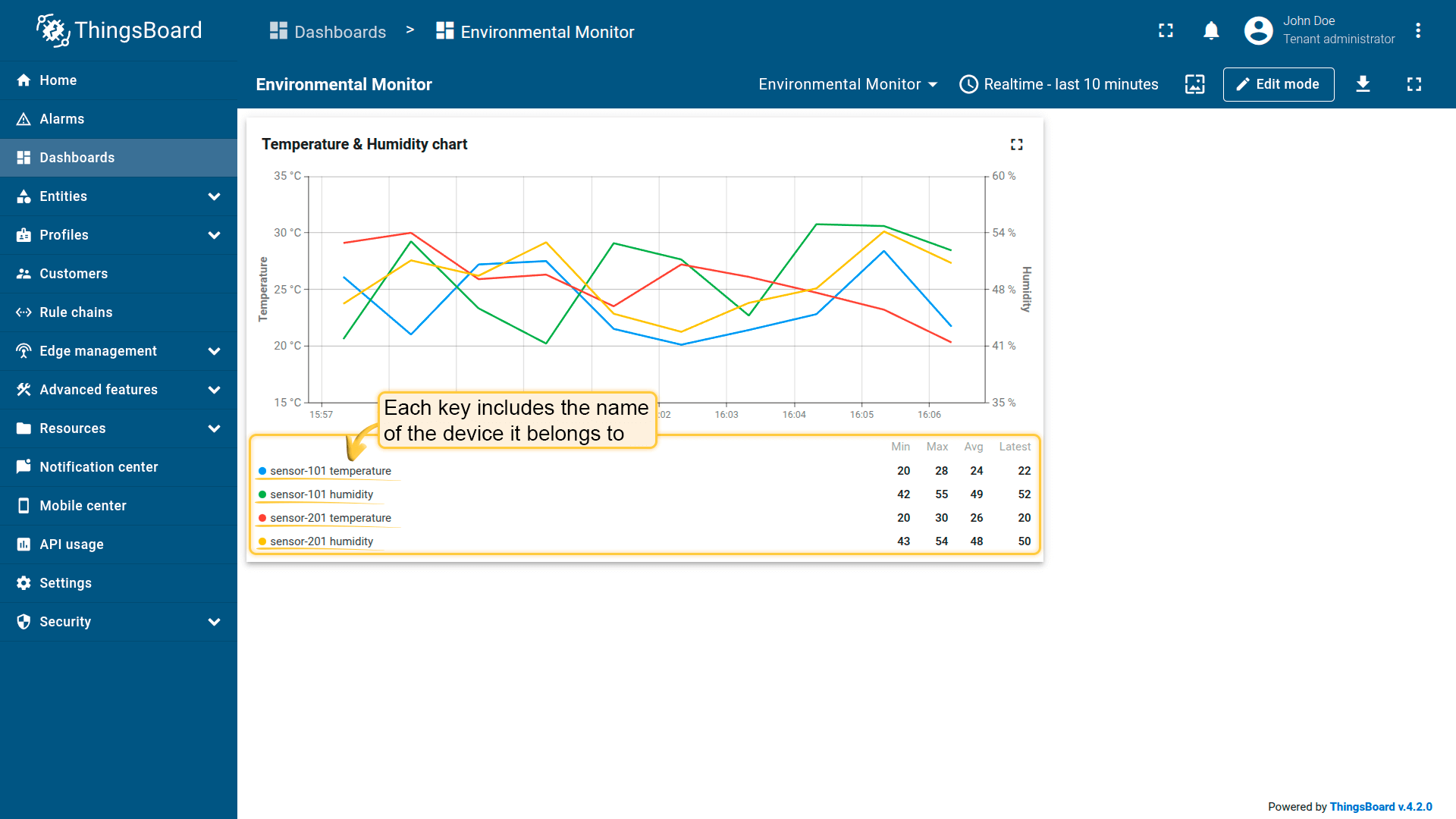 - Visualize device data (telemetry and attributes)